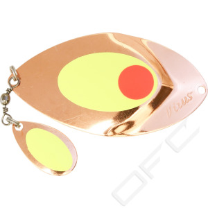 Stor-Virus med pingelsked är ett rödingblänke som har en liten extra sked som skapar ljud och rassel. Perfekt när du fiskar lite djupare tack vare sin storlek och hur blänket fångar upp ljuset. Levereras med VMC-krok.
