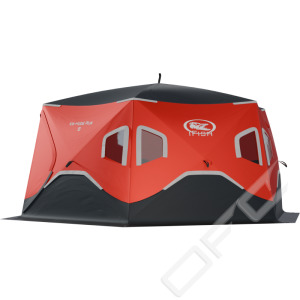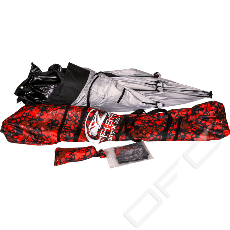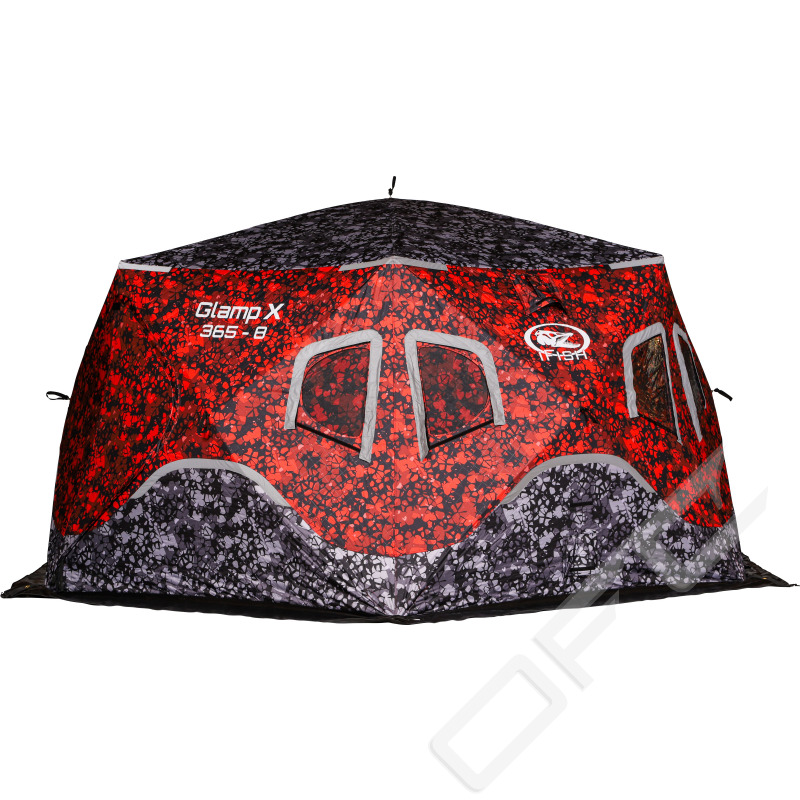 Glamp X 365 är tillverkat i slitstark 600D nylon med förstärkta detaljer och har åtta fönster som kan mörkläggas samt två dörrar.