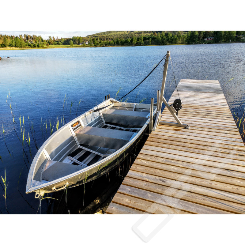 Båtupptagaren är justerbar för att passa flera typer av bryggor och båtar. Lämplig brygghöjd ca 30-70cm över vattenytan.