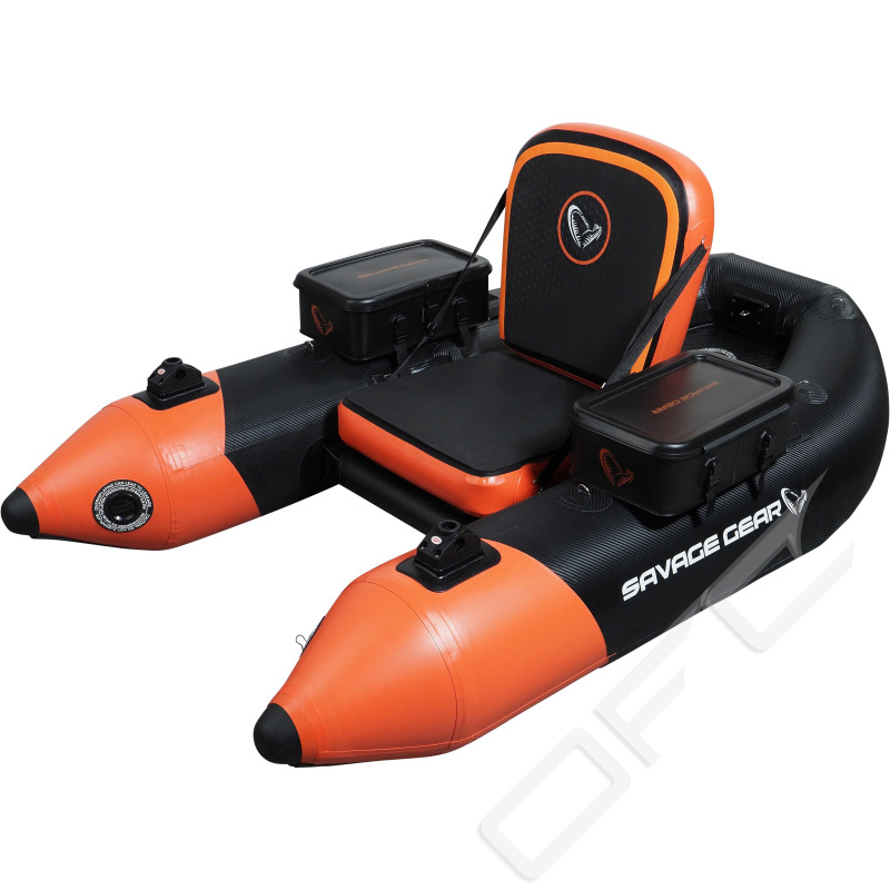 Savage Gear High Rider 185 Co Pro-Motor Belly Boat är en flytring gjord i 0,90 mm tjock PVC med invävd kolfiberoptik, Savage Gear-bogmotorfäste (#SVS70721) förberedd och Float Plus engine-ready. Förberedd med två Berkley Mount-baser för spöhållare, bord, ekolodshållare, kameraarm eller andra Berkley-båttillbehör. Levereras med två stora, avtagbara EVA-väskor, en extra hög sits (10 cm) och den har 2+1 luftkammare. Längst bak på sitsen finns en 20x5 cm, kardborrefästning och lätt avtagbar reflexrem för extra säkerhet. Men den kanske mest anmärkningsvärda förbättringen är den unika formen, vilket gör att båten går snabbare, rakare och därmed mer energieffektiv. Absolut nästa nivå av flytring!