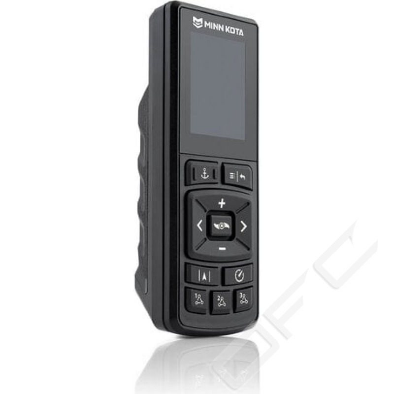 Den vattentäta fjärrkontrollen är lätt och har användarvänliga menyer samt en förenklad knappsats med fyra anpassningsbara One-Boat Network knappar, tre på knappsatsen och en på sidan. Programmera dessa knappar för funktioner som passar dig, styr anslutna Talon- eller Raptor-grundvattenankare, Auto Stow/Deploy och Power Trim med RT Instinct- och Ulterra-modeller eller markera en waypoint på en ansluten Humminbird skärm.