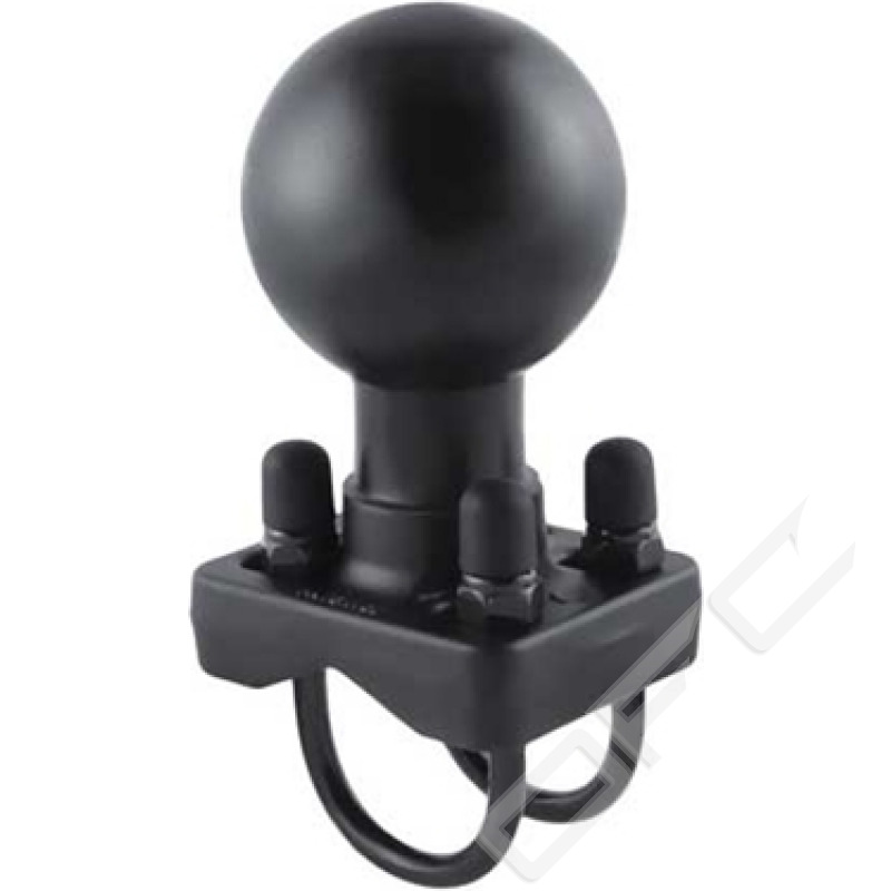 The RAM-D-235-1U consists of a double u-bolt base with 2.25" diameter ball and two zinc-coated u-bolts. The double u-bolt base will accommodate rails from 1.25" to 1.5" in diameter.