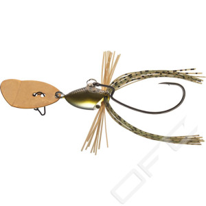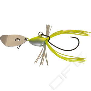 Daiwa Prorex Flex Blade Jig erbjuder fördelarna med en offsetkrok, perfekt för fiske i tät vegetation. Kroken kan enkelt bytas ut då den sitter fast i en splitring. Tack vare den speciella formen på Flex Blade Jig så går den väldigt grunt i vattnet trots sin höga vikt, vilket gör att den är perfekt att fiska med i områden med tät vegetation!