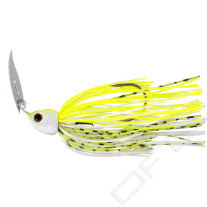 Detta är Version 2 av BladeBite Tungsten Bladed Jig, nu med en tunn och mycket stark specialdesignad metallsked som skapar fantastiska simrörelser. Nyckelfaktorerna hos BladeBite är de intensiva vibrationerna och rörelserna, som startar så snart du börja veva, eller direkt efter en paus när bladet får grepp i vattnet. En s.k. bladed jig fungerar i såväl klart som färgat vatten och fiskas normalt högt upp i vattnet över gräs, träd och stenstrukturer, där den lockande gången stimulerar rovfisken att hugga. I vatten med hårt fisketryck kan en bladed jig vara skillnaden mellan succé och fiasko. Vi har också adderat en stark oval fjäderring för att knyta betet direkt i din tafs eller koppla till en wiretafs. Prova att experimentera med olika mjukbeten som ”trailer”, med curltails, paddletails och creaturebaits, som alla fungerar utmärkt och simmar fantastiskt bakom BladeBite.