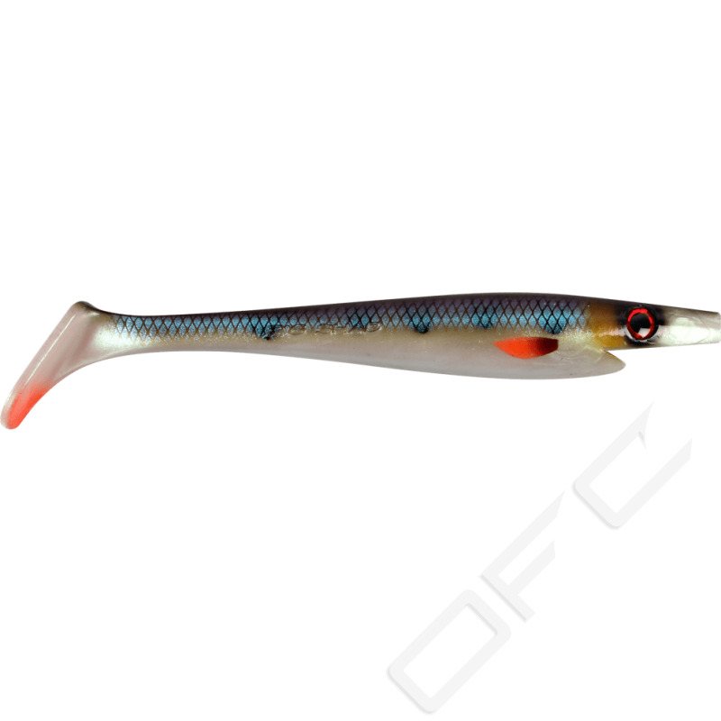 Pig Shad Junior är ett mjukt swimbait inspirerat av det klassiska jerkbaitet The Pig. Pig Shad Junior har en förförisk vaggande gång medans huvudet svagt nickar sida till sida. Svanspartiet paddlar och skruvar sig i en låg frekvens. En perfekt imitation av en skadad betesfisk som simmar fram med sina sista krafter! Pig Shad Juniors kropp har en unik profil som efterliknar en fet betesfisk. Fungerar ypperligt att använda en BFT Flexhead Pike, Catch with Care Shallow Stinger eller en Owner Beast Hook #10/0 tack vare den försänkta skåran i dess rygg. Riggad med en Catch with Care Shallow Screw Small kommer verkligen den fantastiska gången av detta bete i sitt rätta element. Otaliga trofé fiskar har landats och flertalet tävlingar vunnits tack vare den vaggande gången hos Pig Shad!