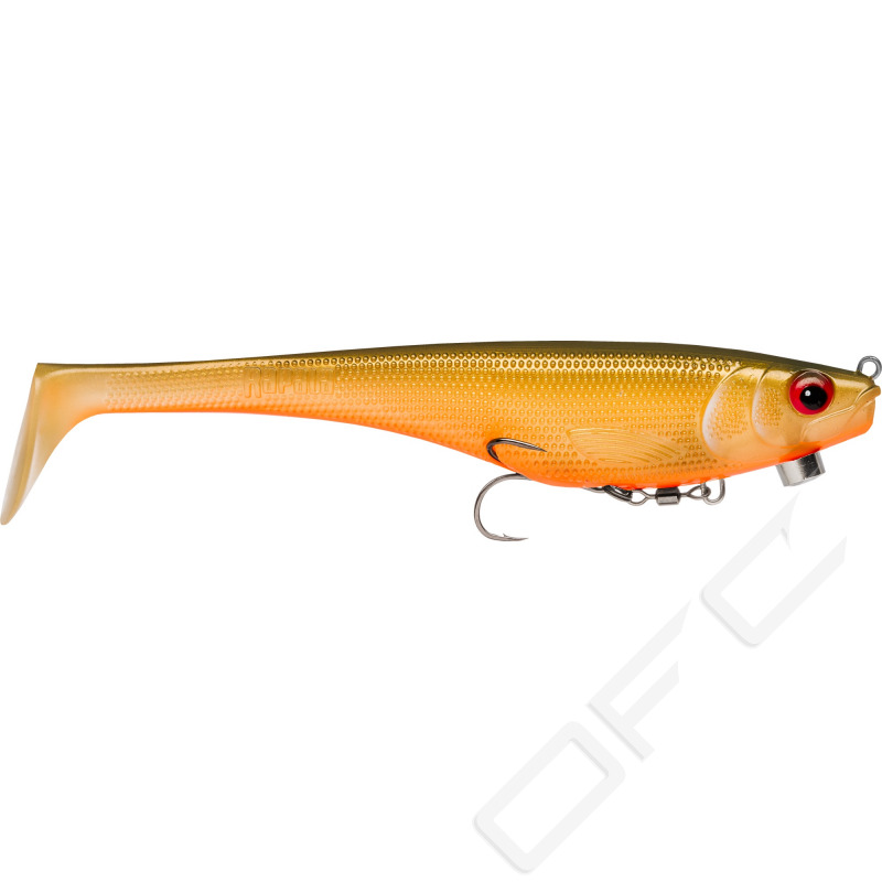 Den mjuka kroppen arbetar med en lugn och stabil rullande rörelse medan den breda paddeln skapar tydliga vibrationer som lockar gädda även på längre avstånd. Betet fiskas effektivt med jämn inspinning men reagerar även bra på tempoändringar och korta pauser.