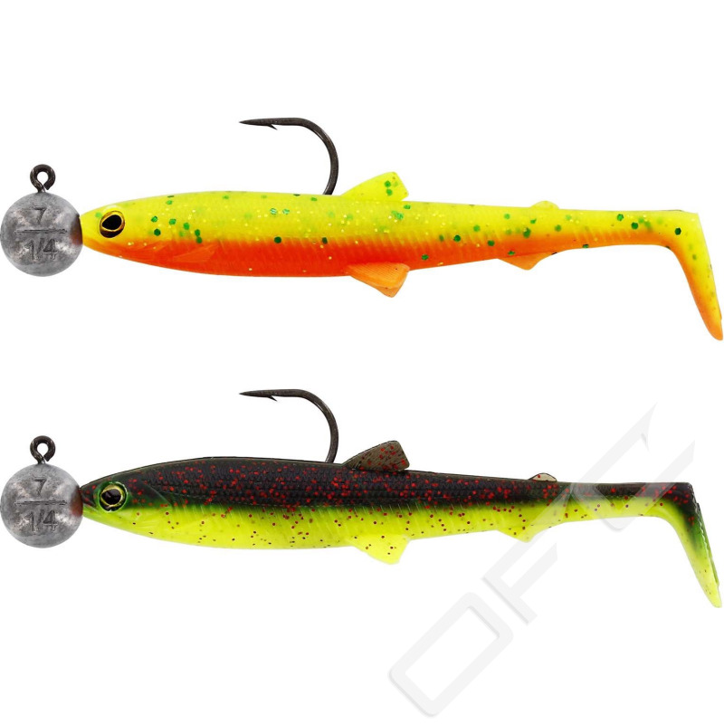 Vill du fånga stor fisk? Då är BullTeez R 'N R det optimala valet för storvuxna predatorer som gädda och gös. En klassisk ”shad tail” och en slank stjärtspole skapar en förförisk slingrande gång med mycket ”belly flash” – även i låg fart. Just den slingrande rörelsen attraherar och övertygar ofta riktigt stor fisk att attackera betet. BullTeez kan enkelt fiskas med ”shallow rigg” eller tacklas för djupare fiske med ett vanligt jigghuvud. För en vasskyddad presentation med en stor offset-krok har vi utrustat BullTeez med såväl buk- som ryggskåra. Perfekt för fiske bland växtlighet!