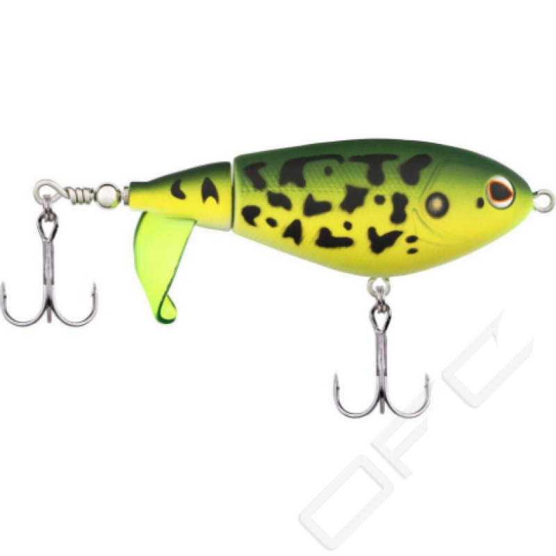 Oavsett om du är en helgkrigare eller ett erfaret proffs, är detta lättanvända ytbete designat för att leverera explosiv och rolig toppvattenaction. Choppos hållbara stjärtpropeller har en lång livstid, och den förbättrade propellern ger mer ljud och stänk. Betets balans säkerställer att dess rörelse börjar omedelbart i kontakt med vattnet och att den simmar bra i en mängd olika hastigheter.