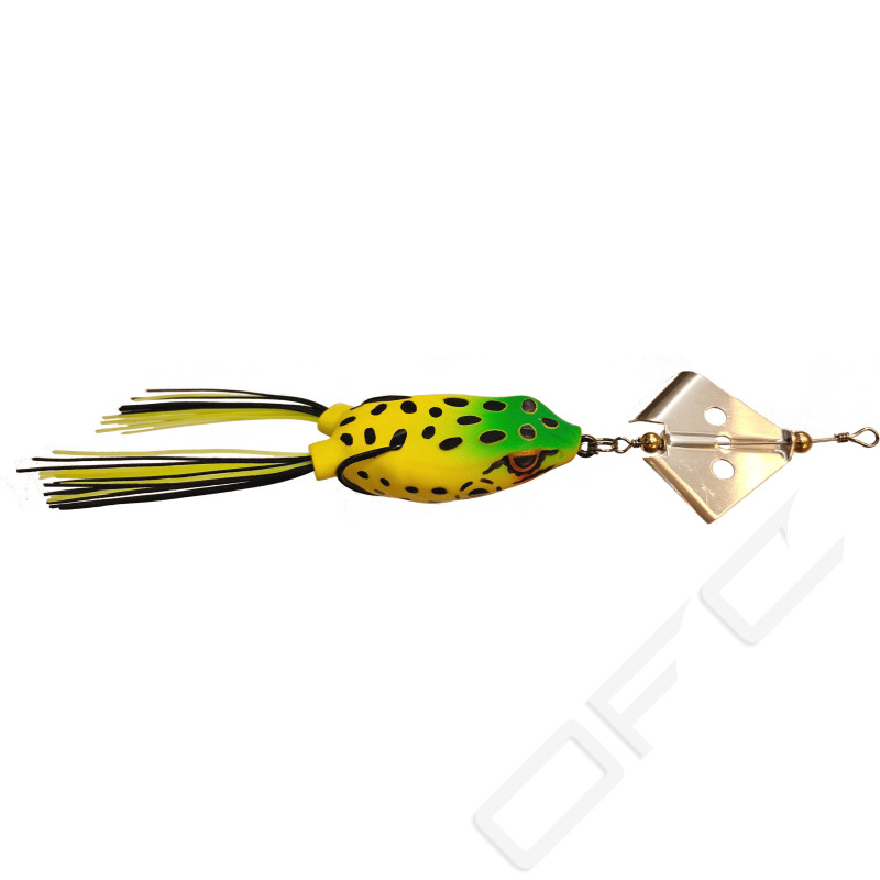 Grundgående mjuk grodimitation med ”buzzer” som attraherar predatorer. Dessutom försedd med rasselkulor som väcker den tröttaste fisken. Lyft spötoppen så ”skvätter” den häftigt i vattenytan. Supervassa och starka japanska krokar. Mycket omtyckt gäddbete.