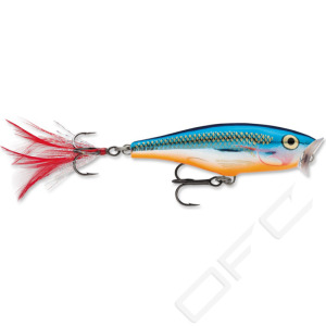 Rapala Skitter Pop är gjord i balsaträ och har ett högljutt ploppande som skapas av den kupade plastskeden. Ljudet från en Skitter Pop har lockat många abborrar att stiga från djupet och hugga.