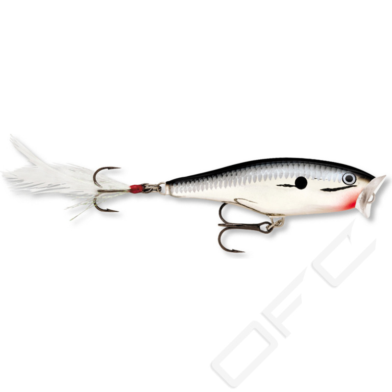 Skitter Pop finns i en lång rad färger, från naturtroget till uppseendeväckande, och levereras med sylvassa krokar från VMC. Den bakre kroken har dessutom utrustats med en extra attraktor i form av fjädrar och glittrande tinsel.