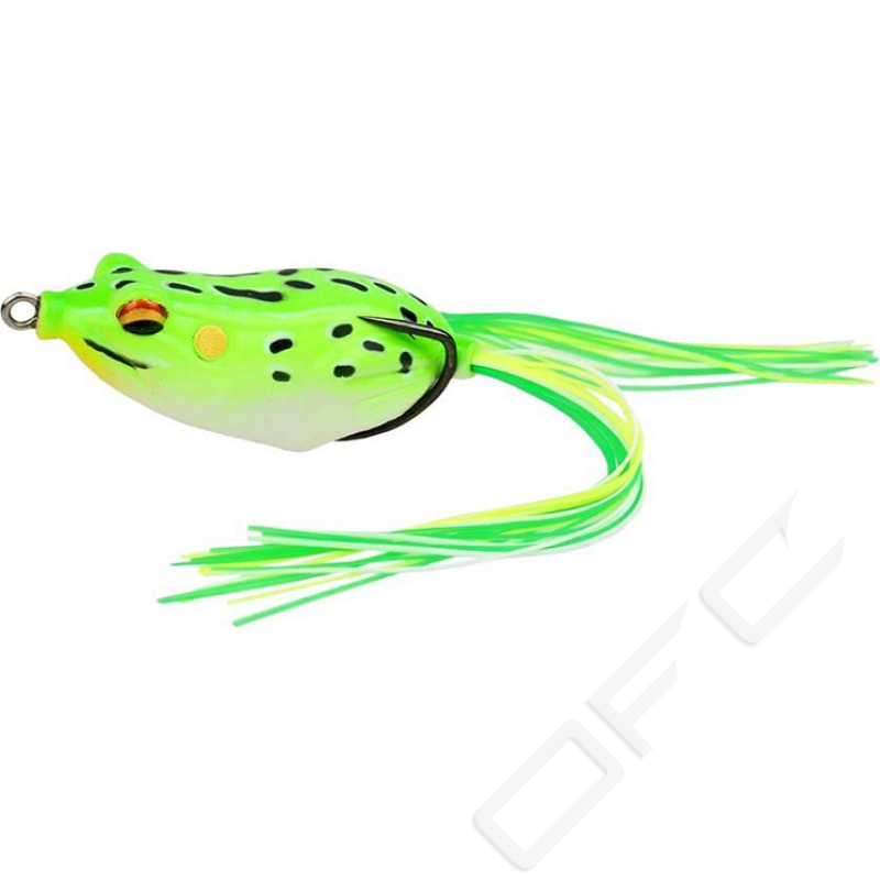 Hollow Body frogs with superb details and a realistic profile. Lively, durable Silicone Skirt legs. 2 Models, the Walk frog, that walks across the surface on retrieve and Pop Frog, that makes a deep plopping sound on the pull Both models build over an ultra sharp Double hook – with detachable single hook stinger! Superb for Bass & Pike!
