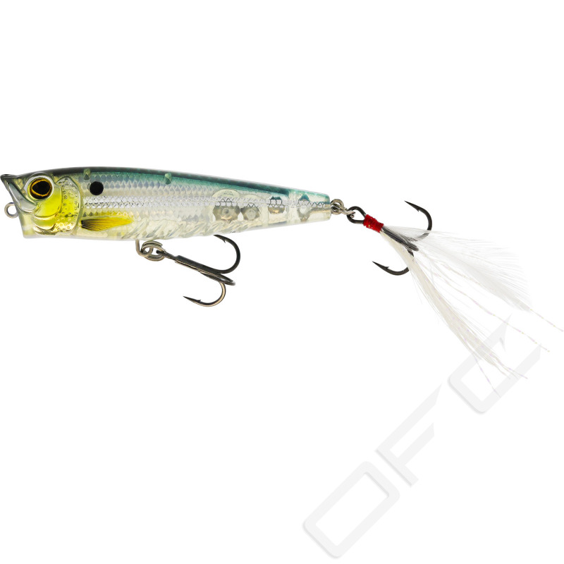 Fiske med ytbeten är förmodligen det mest spännande sättet att fånga fisk och Westin Spot-On Popper är packad med små detaljer som gör den bäst i klassen. Vid första anblick utgör den verklighetstrogna fiskmönstrade kroppen med realistiska ögon ett vackert designat bete. Den förlängda trådöglan gör det lättare att byta bete, oavsett om du knyter direkt eller använder ett beteslås. Kroppsformen har utformats för att ge exakta, långa kast och är mycket lätt att fiska. Fiska Spot-On Popper med snäva ryck/knyckar med din handled, eller med längre "drag" för att skapa det magiska ploppande ljudet. Använd Spot-On Popper över gräsbäddar, nära stranden, på grunda områden eller över djupare partier för att utlösa explosiva hugg från aggressiva rovfiskar. Spot-On Popper ligger med stjärten neråt vilket i kombination med den maskerade fjäderklädda kroken ger en fantastisk krokningsförmåga!