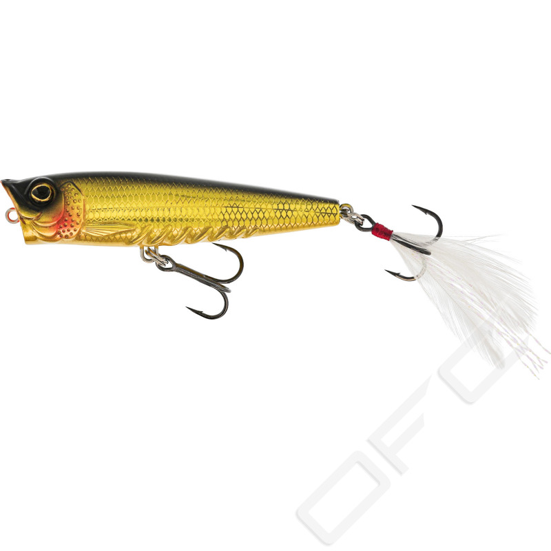 Fiske med ytbeten är förmodligen det mest spännande sättet att fånga fisk och Westin Spot-On Popper är packad med små detaljer som gör den bäst i klassen. Vid första anblick utgör den verklighetstrogna fiskmönstrade kroppen med realistiska ögon ett vackert designat bete. Den förlängda trådöglan gör det lättare att byta bete, oavsett om du knyter direkt eller använder ett beteslås. Kroppsformen har utformats för att ge exakta, långa kast och är mycket lätt att fiska. Fiska Spot-On Popper med snäva ryck/knyckar med din handled, eller med längre "drag" för att skapa det magiska ploppande ljudet. Använd Spot-On Popper över gräsbäddar, nära stranden, på grunda områden eller över djupare partier för att utlösa explosiva hugg från aggressiva rovfiskar. Spot-On Popper ligger med stjärten neråt vilket i kombination med den maskerade fjäderklädda kroken ger en fantastisk krokningsförmåga!