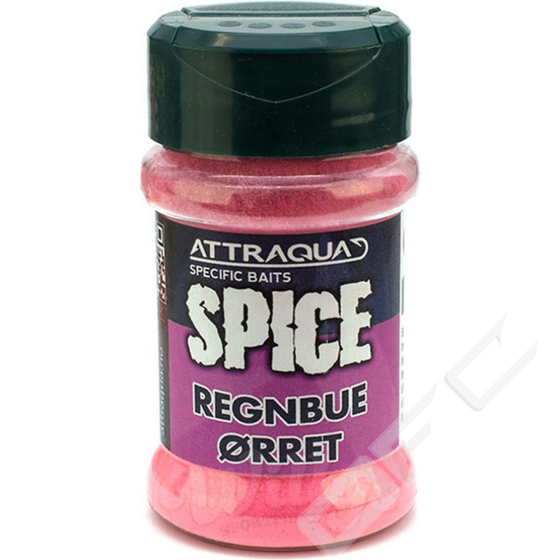 Attraqua Spice, en krydda med attraktant. Betet tex. maggot, doppas först i vattnet och sen läggs i pulvret i burken. Genom att använda maggot och Attraqua Spice kombineras det bästa av två värdar, maggotens doft och rörelser tillsammans med en extra stark attraktant som lockar in fisken från avstånd och till hugg.
