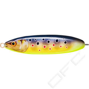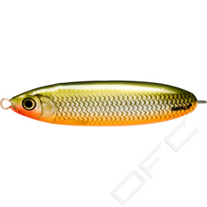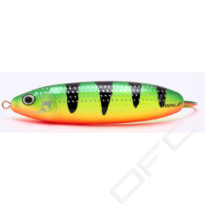 Minnow Spoon vass 8 cm. Troligen ett av världens effektivaste skeddrag, ett äkta Rapala-bete med en genialisk släng av de bästa egenskaperna hos en Rapala-wobbler. Mycket lättkastat, har en oregelbunden vild simrörelse liknande skadad småfisk. Ett allroundbete i ordets verkliga betydelse. Fungerar i praktiskt taget alla fiskevatten och på olika djup. Rekommenderas för öring, gädda, abborre. Vassmodellen är ett utmärkt alternativ, då abborren och gäddan ligger och lurar inne bland växter, här har du marknadens effektivaste vassbete, du kan lugnt kasta in bland vegetation.