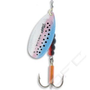 Mepps Aglia finns i ett flertal storlekar och färger, med eller utan prickar