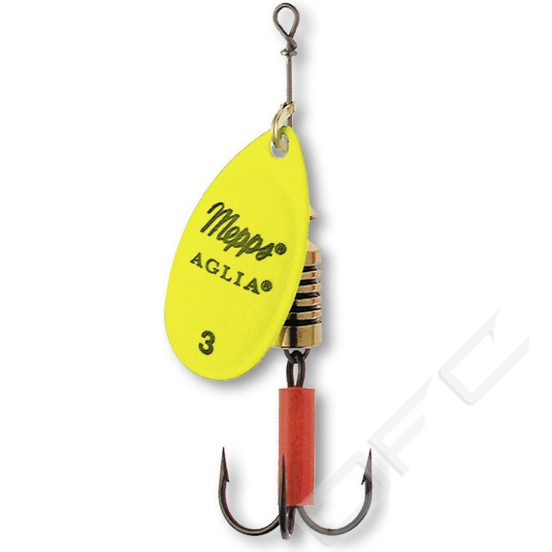 Mepps Aglia finns i ett flertal storlekar och färger, med eller utan prickar