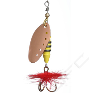Myran Sting är en klassiker i fiskelådan. Spinnarskeden har 5 hål i olika storlekar, vilket har en unik lockande effekt på fisk. Kroppen är gul med svarta detaljer. Myran Sting är även försedd med den flugliknande Mirakroken