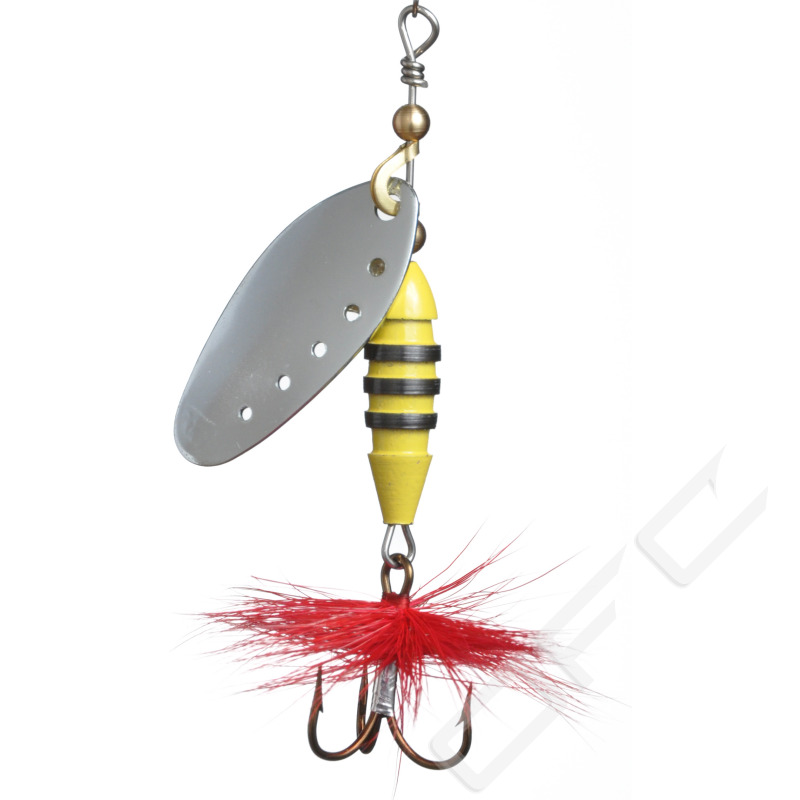 Myran Sting är en klassiker i fiskelådan. Spinnarskeden har 5 hål i olika storlekar, vilket har en unik lockande effekt på fisk. Kroppen är gul med svarta detaljer. Myran Sting är även försedd med den flugliknande Mirakroken