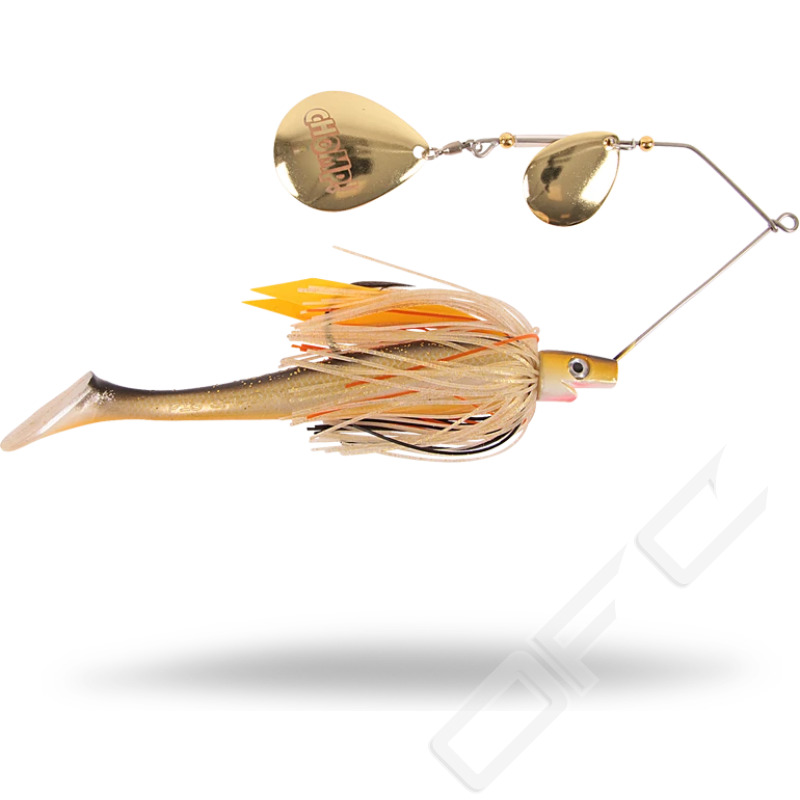 Pig Chopper XL Spinnerbait från Catch with Care har det karakteristiska Pig-utseendet i kombination med en strömlinjeformad spinnerbaitprofil. Pig Chopper XL är utrustad med ett huvudblad av Colorado-typ och en mindre Colorado som stöd, detta hjälper Pig Chopper XL att hålla sig stabil under inspinning. En sylvass enkelkrok med en lure keeper wire gör det enkelt och säkert att sätta på trailern. Produkten levereras riggad med en Pig Shad Nano-kropp för extra bulk och action i presentationen. Huvudet på Pig Chopper XL är färgat och belagt för ytterligare attraktion till kjolen.