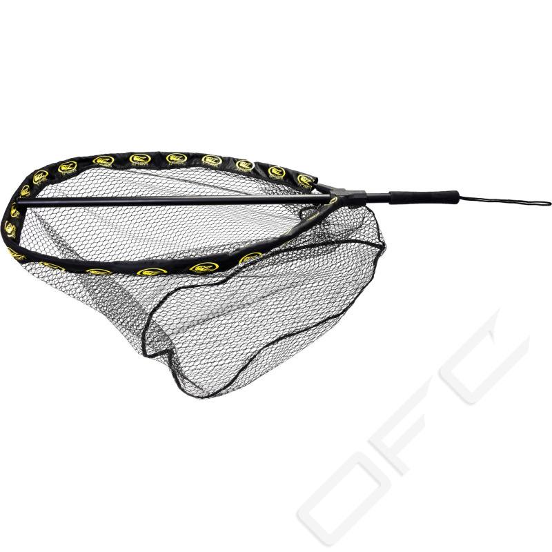 Större håv för abborrfisket med skonsamt gummerat nät som även minskar risken för att krokarna ska fastna. Handtaget kan skjutas in i håven för att underlätta vid transport eller förvaring. Den klädda kanten gör att fisken enkelt glider in i håven.