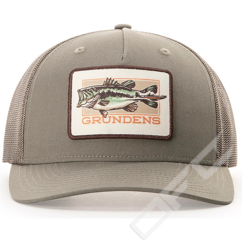 Klassisk mid-crown truckerkeps med justerbar snapback-knäppning. Med en slagkraftig Grundéns "Off To The Races" Largemouth Bass-design på en autentisk Richardson-keps.