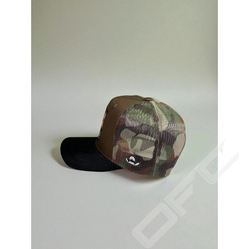 Du kanske inte ser honom – men han ser dig.Forest Phantom är byggd för dig som jagar mer än bara vilt. För dig som kliver upp i gryningen, följer spåren i mossan och vet att tålamod är det vassaste vapnet.Kepsen hyllar skogens tystaste möte – mellan människa och djur.Front i jordbrun canvas, med patch på en älg med truckerkeps – skogens konung, med lika mycket attityd som horn.Baksidan i camo-mesh låter dig smälta in, men säger ändå:jag är här för att jaga.