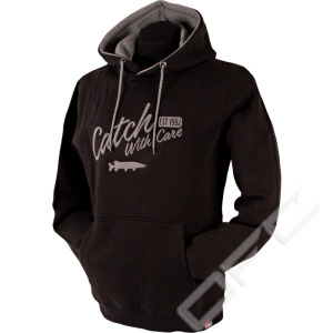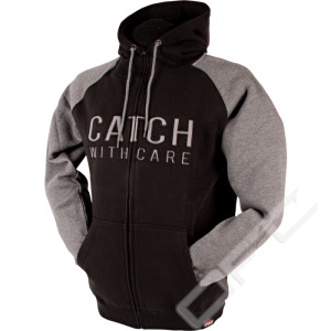 CWC hoodie med broderad Catch With Care text och en gädda på bröstet, det finns