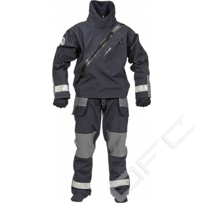 Ursuit Sea Horse Comfort means a state of physical ease and freedom to focus on the essentials – stay comfortably dry. Thanks to the telescope waist construction it fits well and it is comfortable and light to wear. It keeps you dry regardless of how long you will stay in water. It functions perfectly, in all conditions. Material is vapour permeable and water tight 4-Tex®. Seam construction, double seams so that the seam will not open even when worn. Inside the seams are heat seal taped and reinforced to be 100% watertight. The suit is equipped with several reflective tapes in right places, which assures visibility in all conditions. The soft and durable reflective tapes are made in accordance with the directive on marine equipment. Knee and back reinforcement are made of durable Cordura fabric. Relief zipper as standard. The dry zipper is placed from the right hip up to the left shoulder. The position of the zipper minimize the disadvantages of zipper when sitting and moving around. Integrated braces keep the trouser part up at the same time as the crotch strap keeps the upper part down. Thanks to the telescope design the trousers do not fall down in the way they may do in a one piece overall. Persons of different height can use the same suit without weakening the ergonomic features.