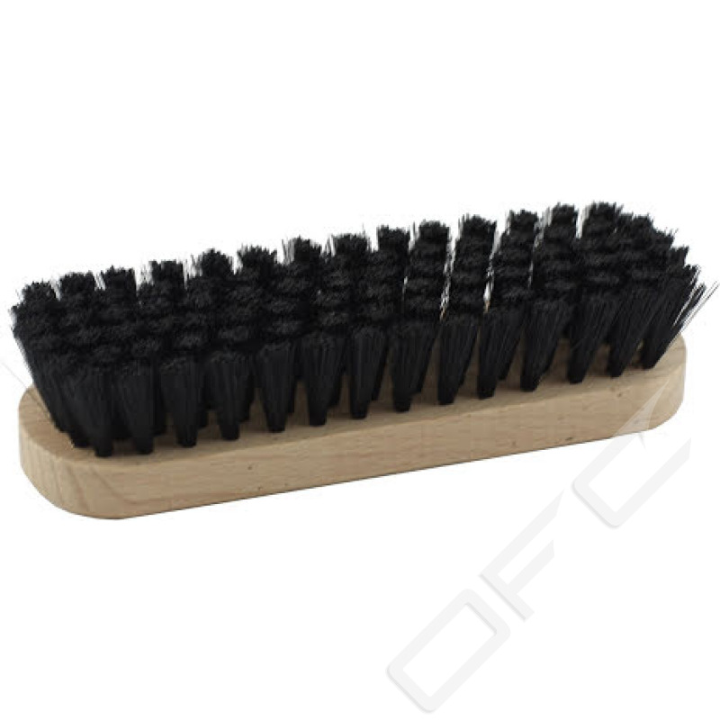 Efter att skorna fått stå med skokrämen och dra i ca 2 timmar, är det dags att putsa dem med putsborsten. Detta görs innan man avslutar putstrasan för riktigt fin glans.