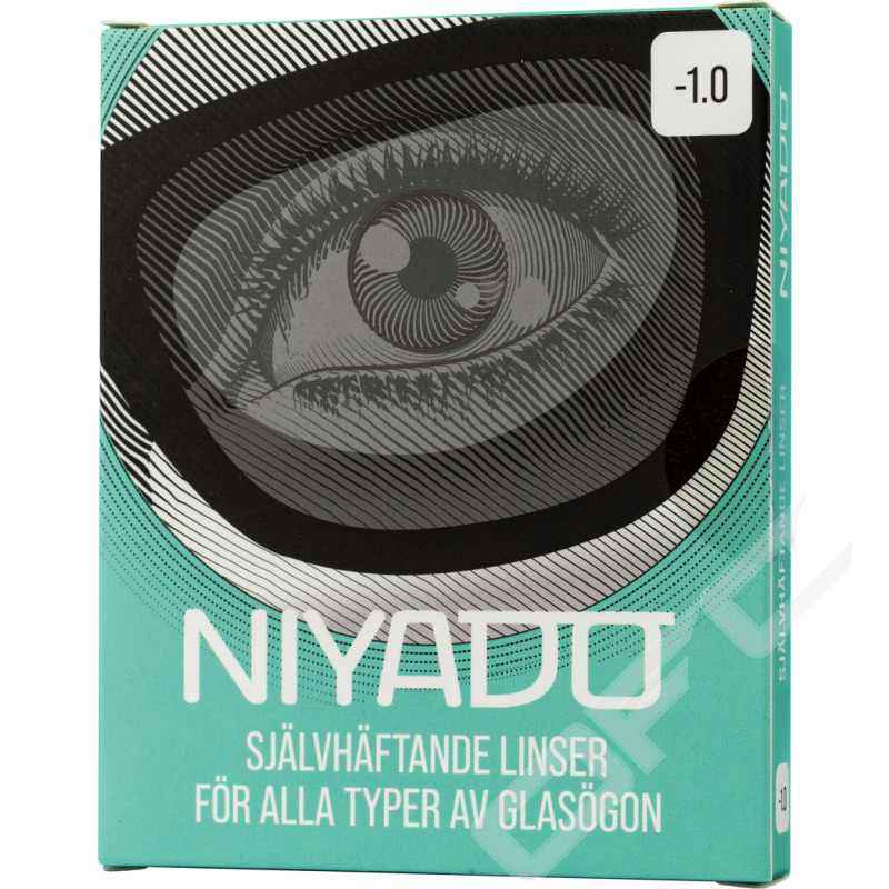 Niyado - Stick On Lenses är självhäftande optiska silikonlinser som kan fästas på insidan av t. ex solglasögon för att ge dem styrka.