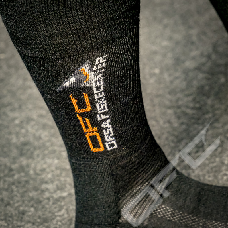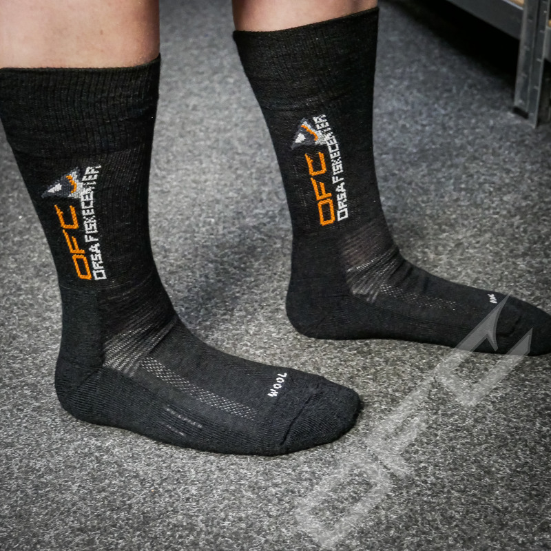 Sockan är stickad i 70 procent Merinoull. Merinoullen är den finaste och mjukaste ullen som finns på marknaden och säkerställer att strumpan inte kliar. Merinoull har den fantastiska funktionen att den är värmereglerande. Med det menas att den värmer när det är kallt och svalkar när det är varmt. Värmer även om ullen blir blöt. Resterande består sockan av 25 procent polyamid och 5 procent lycra, för att ge strumpan elasticitet och göra den slitstark.