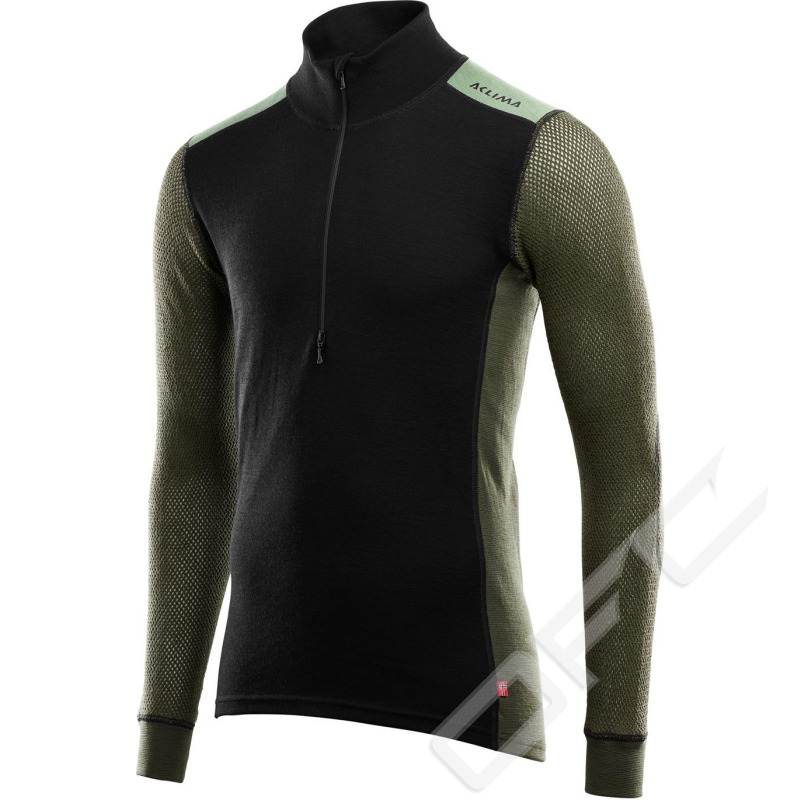 Aclima WoolNet Hybrid mockneck M's Jet Black / Olive Night / Dill XS