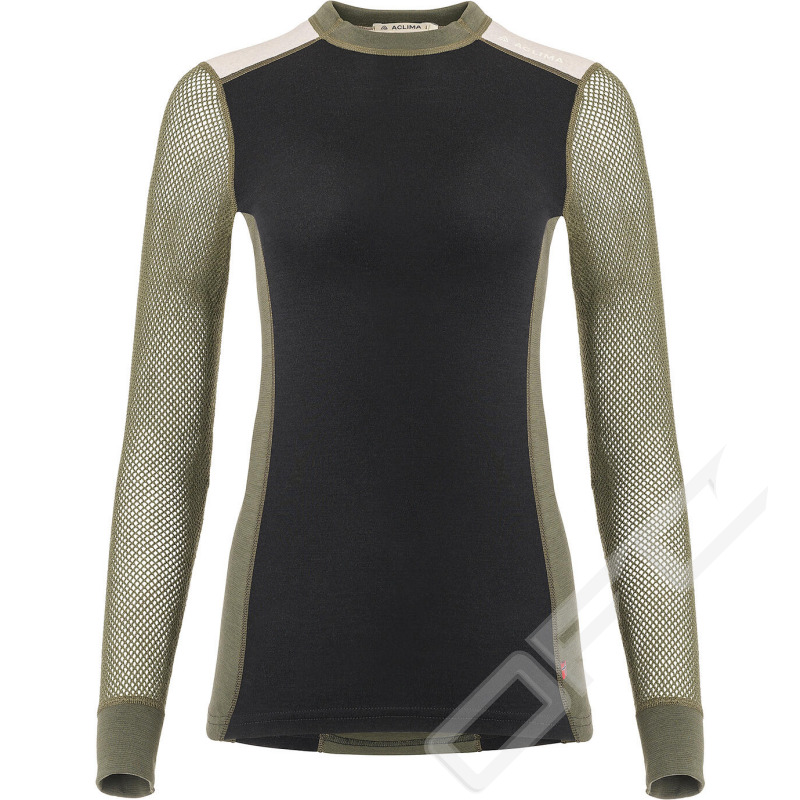 Aclima WoolNet Hybrid crewneck W's Jet Black / Olive Night / Beige Mel XL