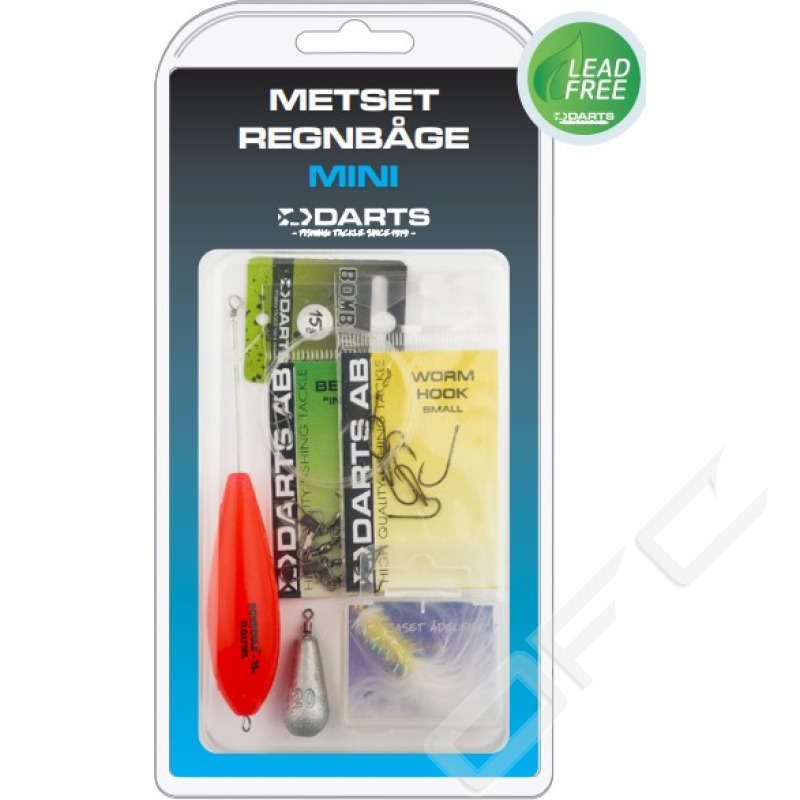 Darts Metset - Regnbåge Mini är ett perfekt startkit för regnbågsfiske. Kittet ger dig möjlighet att kombinera produkterna som du vill så du kan använda det både till mete och fluga.