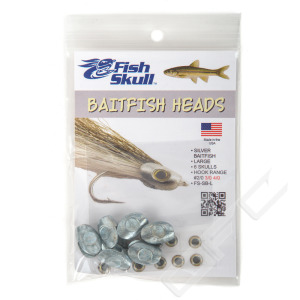 The Baitfish Head is a weighted head with a realistic baitfish profile and unique design features that make it a versatile platform for tying a wide variety of streamer patterns. Quick and easy to tie, this groundbreaking innovation in fly tying offers an exciting alternative to using dumbbells or cones to weight your streamers. A set of matching Fish-Skull Living Eyes is included with the heads in your pack.