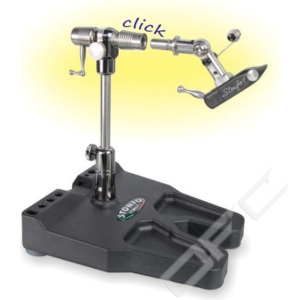 Danica Innovation Cam Vise verkar bli mer populärt för varje år som passerar och är designat av den innovative dansken Jonny Fiske. Städet låter dig rotera chucken 360° grader utan att kroken ändrar sin vågplan dvs "True Rotary". Chucken är gjort i härdat svenskt stål och roterar på kullager med ett justerbart motstånd, resten av städet är gjort i kompositmaterial. Med detta städ kan du binda det mesta storleksmässigt då chucken klarar av att hålla krokar från #24 till #6/0. Levereras som standard med spolhållarställ och teleskopisk arm.