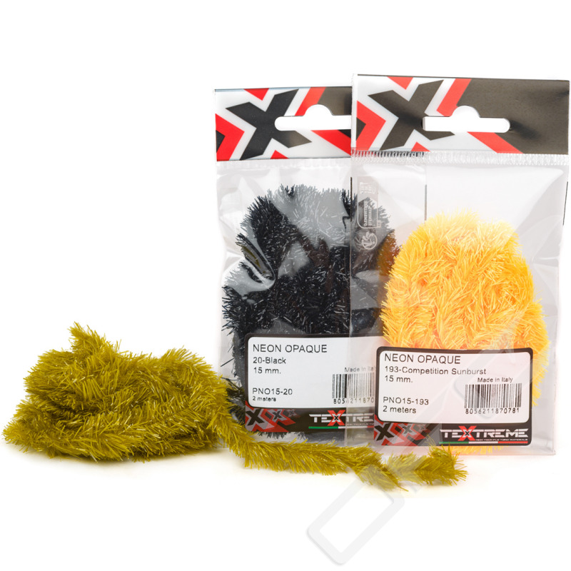 Textreme Neon Opaque 15mm är en chenille speciellt utformad för att binda Blobs, kännetecknad av ogenomskinliga fibrer som skapar en mycket livfull färgeffekt. Den termofuserade kärnan är både mycket tunn och robust, det gör Neon Opaque idealisk även för mindre krokstorlekar och flerfärgade mönster. Du kan även använda Neon Opaque i kombination med andra chenilletyper eftersom den inte bygger särskilt mycket på flugans kropp.