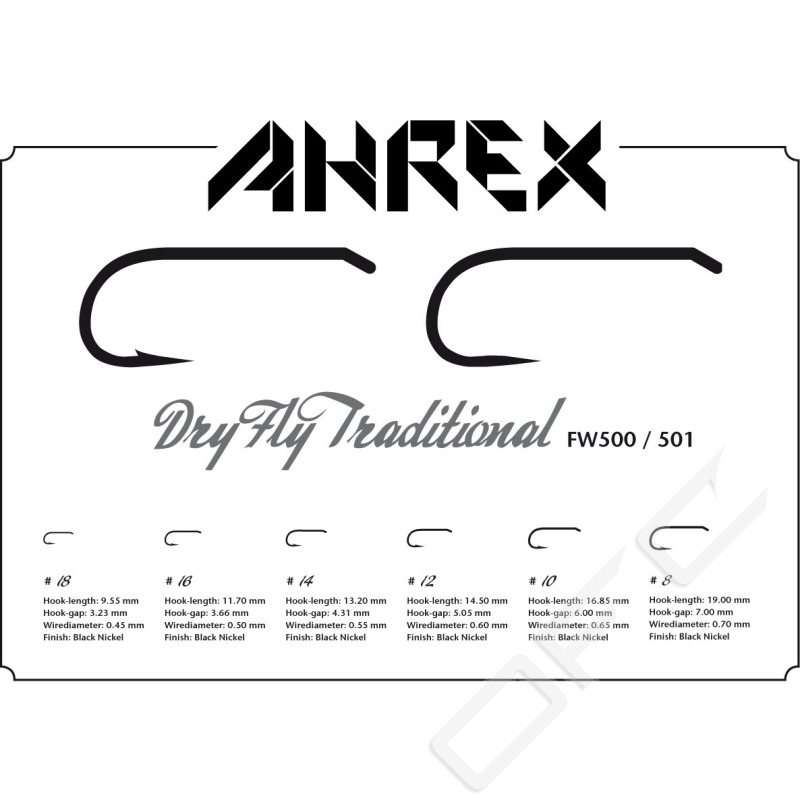 Ahrex FW500 är en torrflugekrok med klassiskt utseende som har alla egenskaper man kan tänkas vilja ha på en typisk torrflugekrok, kroken gör sig riktigt bra till många mönster. Modellnamnet tyder på att detta är en torrflugekrok men den funkar även väldigt bra till nymfer och våtflugor!