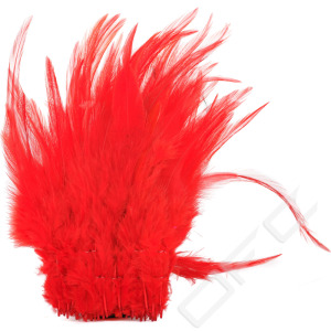 Strung Saddle Hackle levereras i färdiga buntar för enklare hantering av fjädrarna.