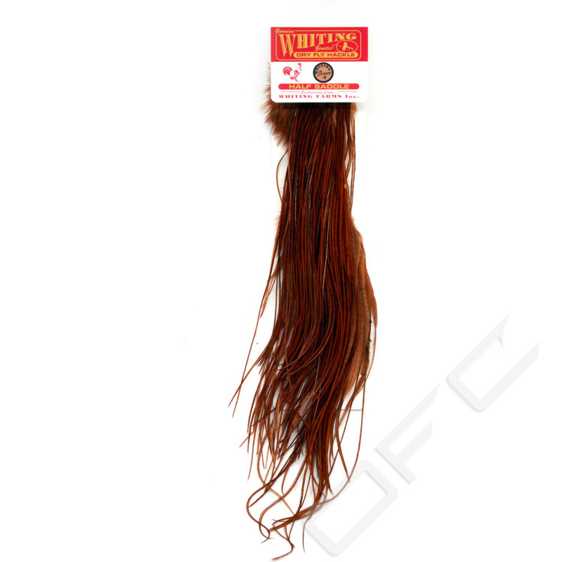 Whiting Bronze 1/2 Saddle är en 1/2 sadel som är känd för att ge dig långa, jämna, täta och följsamma hackel där du kan binda flertalet torrflugor på en enda fjäder. Med dessa sadlar får du ett otroligt utbud av hackel för att binda torrflugor från storlek #12 till #18 beroende på vilken modell av krok som används.