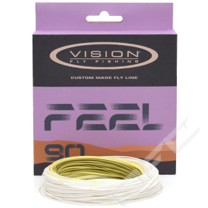 Vision Feel 90 är försedd med en klump på 9 meter. Den korta klumplängden gör att linan lämpar sig riktigt bra i situationer där utrymmet runtom är begränsat och man behöver använda sig av switch eller speykast. Taperingen gör det möjligt att kasta streamers samtidigt som den klarar av att göra precisionsrika kast med längre tafsar vid torrflugefiske. Skjutlinan på Vision Feel 90 är vit medans huvuddelen av klumpen är gul och spetsen av klumpen är i en mörkare oliv för en diskretare presentation, allt för att minska chansen att skrämma fisken i klara vatten. Feel 90 ligger extremt rakt på ytan tack vare sin kärna och coating vilket är viktigt för att du ska kunna ha en bra kontakt med flugan.