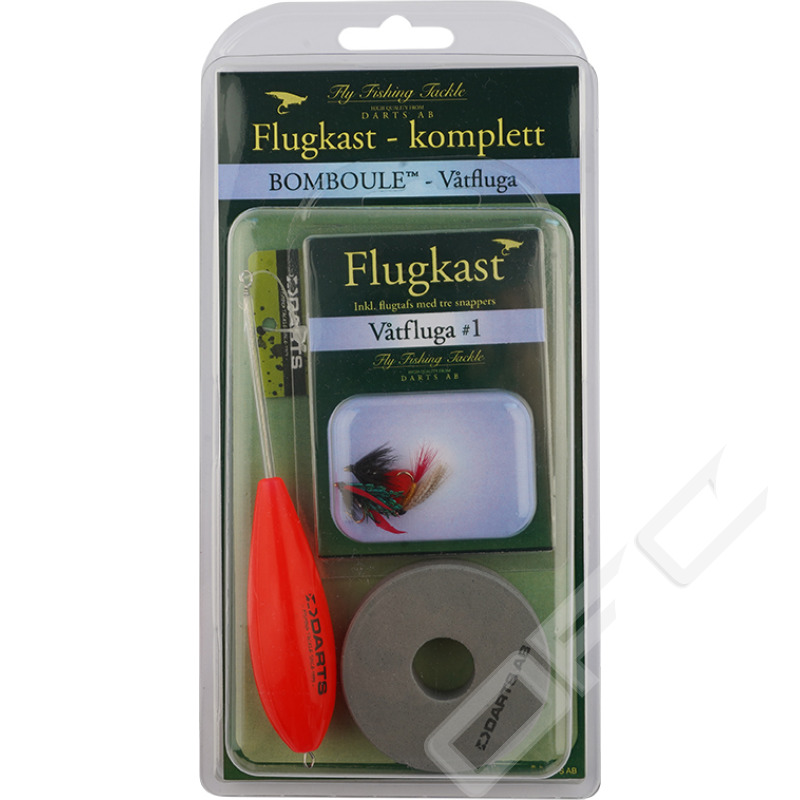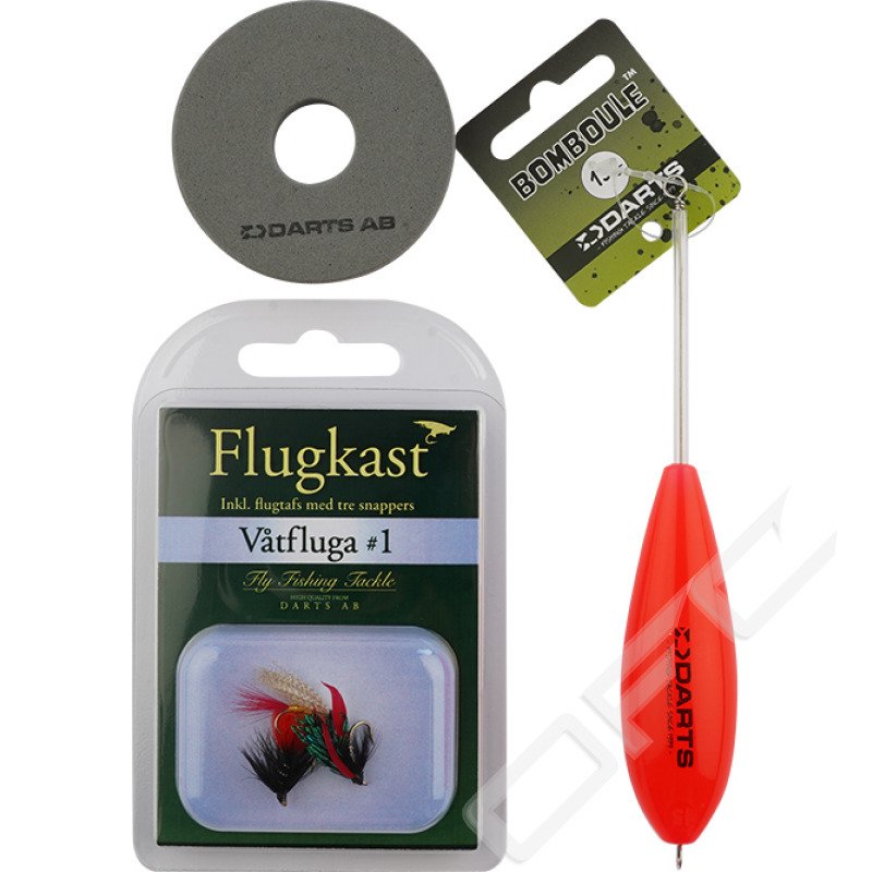 Flugkast komplett levereras med bomboule, tafs i en smidig ask. Att fiska med flugkast är en mycket effektivt och spännande metod och ett klassiskt sätt att fånga harr, öring och röding. Darts flugkast är knutna med snappers som gör det enkelt att montera sina favoritflugor och finns i ett flertal fångstgivande flugmönster-set.