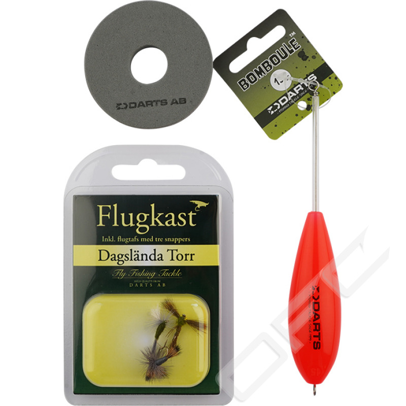 Flugkast komplett levereras med bomboule, tafs i en smidig ask. Att fiska med flugkast är en mycket effektivt och spännande metod och ett klassiskt sätt att fånga harr, öring och röding. Darts flugkast är knutna med snappers som gör det enkelt att montera sina favoritflugor och finns i ett flertal fångstgivande flugmönster-set.