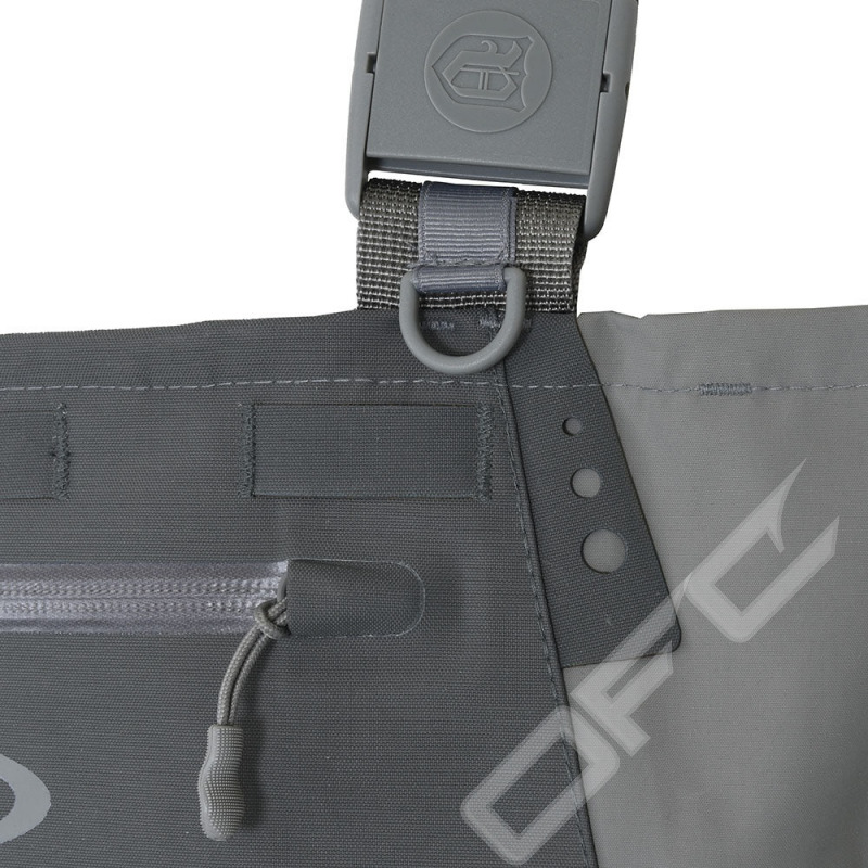Koski vadarna är tillverkade av mjuka och bekväma material och tygerna är nu helt fluorkarbonfria tack vare den nya miljövänliga C0 DWR-beläggningen. Den nedre delens tjockare material når upp till låren, vilket gör denna vadare stark. Den vattenavvisande framfickan är tillverkad av vadartyg och har en vattenavvisande YKK AquaGuard-dragkedja. Det finns öglor för tillbehör på båda sidor av fickan och en tillbehörsrem på fickans övre ände, både på utsidan och insidan, så att du kan fästa alla dina verktyg på denna vadare. Denna vadare levereras med en vattentät, genomskinlig TPU-ficka som är avtagbar och perfekt för din telefon och bilnycklar. Det finns ett starkt kardborreband för enkel och snabb fastsättning och två fästsnören med krokar för att säkra denna ficka.