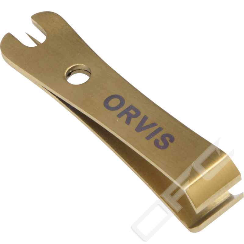 Orvis Nipper. Praktisk linklippare med gummerat grepp och nål för att rensa flugor från lack. Färg Gold Olive