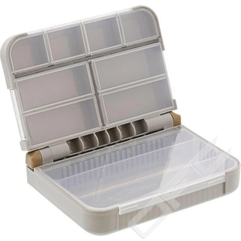 W3 dubbelsidiga ”terminal tackle boxes” är Westins lösning på förvaringsbehoven av alla småprylar. Håll alla tillbehör säkra, torra och prydligt organiserade inför nästa fisketur. Den medelstora tackelboxen har fyra robusta avdelare för huvudfacket på ena sidan och 8 fasta fack på den andra sidan. Den mindre tackelboxen har 5 fasta fack på varje sida.