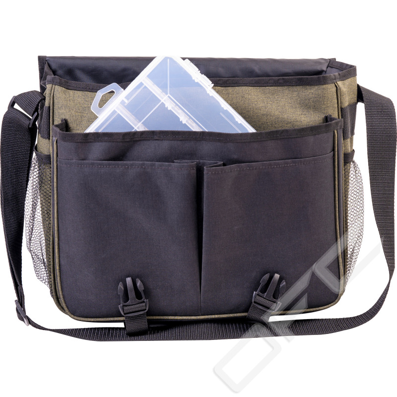 En mycket praktisk fiskeväska, lämplig för ett brett utbud av fiskare. Levereras med tre lådor, och försedd med en stor framficka i mesh och två stora sidofickor. En mångsidig väska som är lätt att bära tack vare den bekväma axelremmen.
