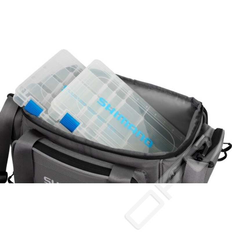 Shimano Tackle Bags är extremt funktionella och perfekta för alla typer av fiskescenarier. Nu uppgraderat till ett kraftigt 420D 600x300 vattentåligt material med uppgraderade axelremmar. Dessa väskor finns i 2 storlekar - medium och large, med två beteslådor och sidofickor med dragkedja perfekta för linsaxar och tänger, och en stor ficka på framsidan för förvaring av lösa redskap. Med kraftiga sömmar och slitstark bomull kan dessa väskor ta stryk från salt och sol.